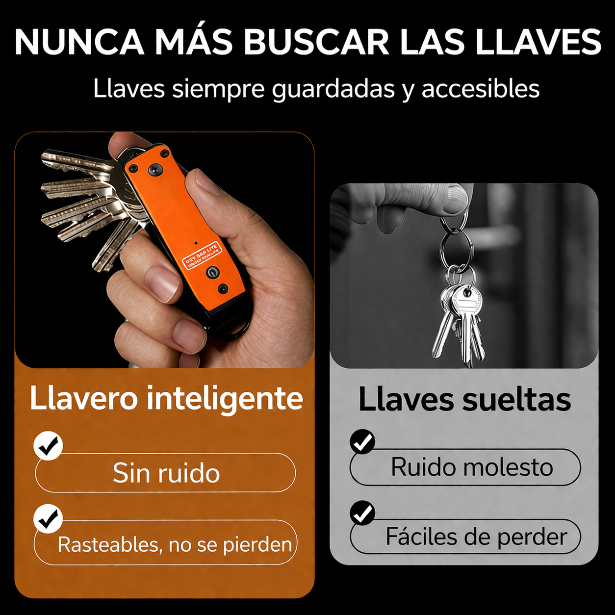 Este llavero facilita una mejor organización personal, ya que mantiene todas tus llaves agrupadas y protegidas. Así, reduces el riesgo de pérdida y optimizas tu tiempo cada día.